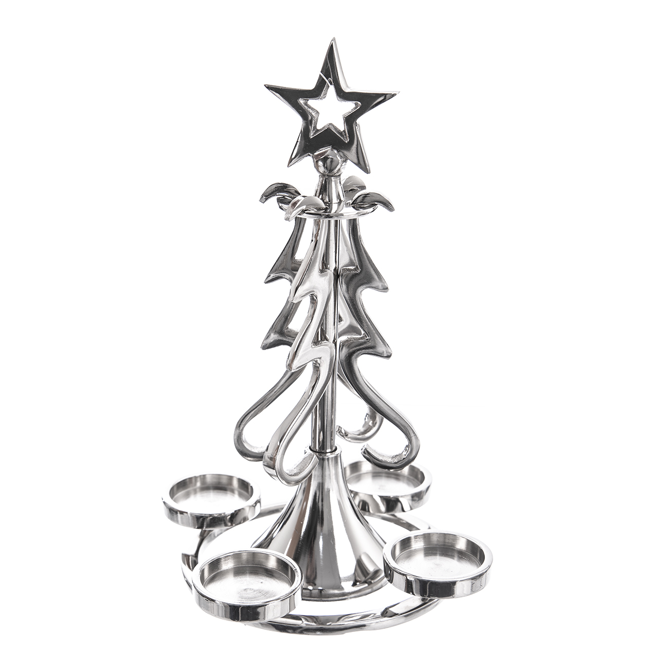 Svícen kov stromeček 4 svíčky stříbrný 28x19 cm