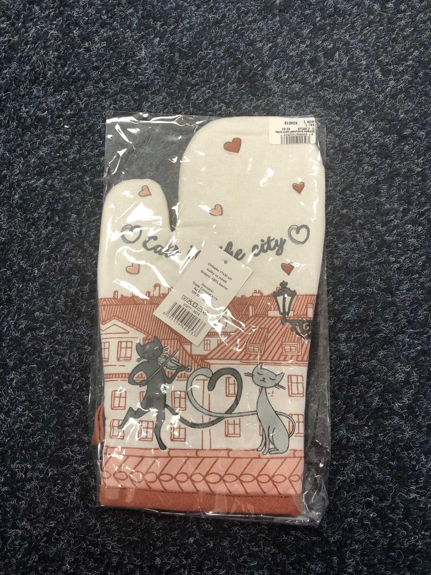 Chňapka kuchyňská textil kočky ve městě 17x30 cm