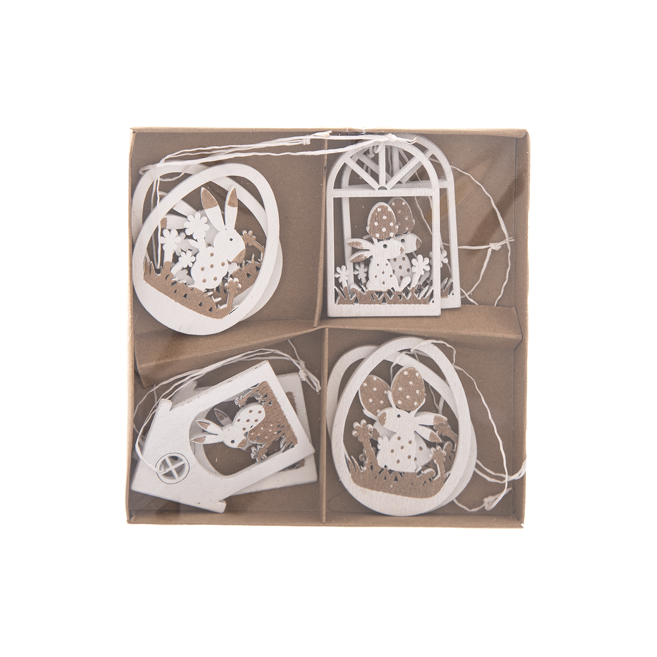 Přízdoba dřevo závěsná bílá Velikonoce 6 cm