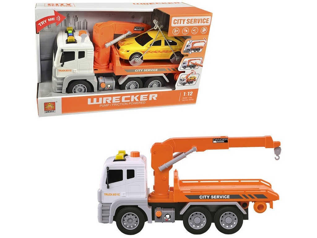 Odtahová služba, na setrvačník, funkce pumpy zvedá rameno, světlo, zvuk, 31 x 10 x 16,5 cm