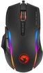 optika, 9tl., drátová USB, černá, herní, RGB podsvícení; Boční kolečko;Senzor: optický Pixart 3325DB + BY8948; DPI: 1000-1600-2400-5000-3200-10000 (defaultně);Počet tlačítek: 9 (programovatelných);Odezva: až 1000 Hz;Délka kabelu: 1.8 m;Rozměry: 127 x 76 x 40 mm;Váha: 105g;Zrychlení: 20g