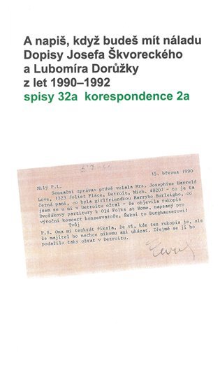 A napiš, když budeš mít náladu. Dopisy Josefa Škvoreckého a Lubomíra Dorůžky z let 1990–1992 (česky)