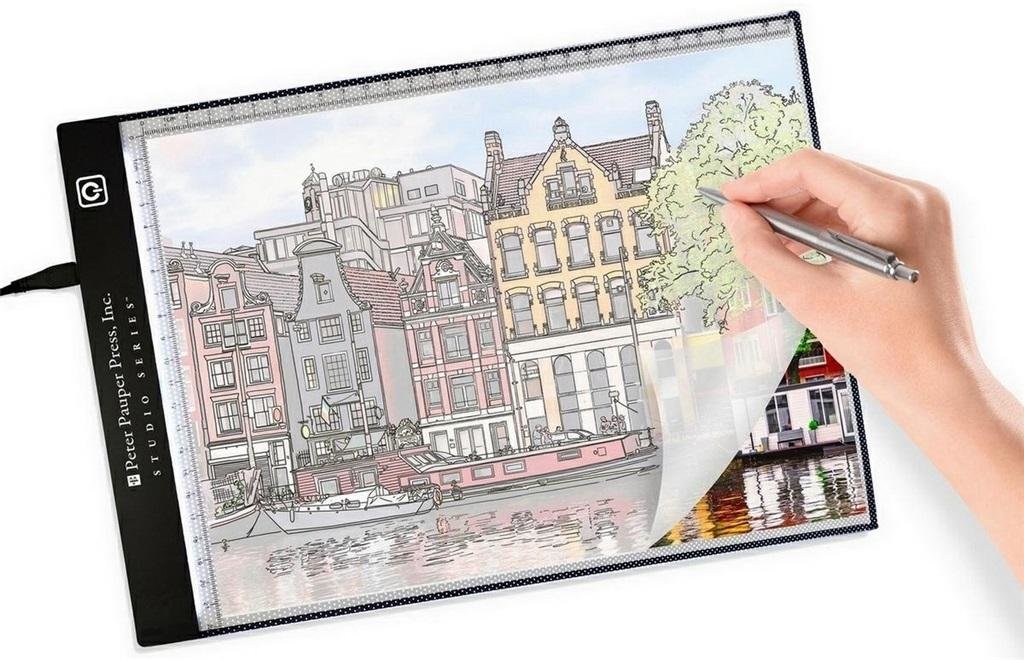 Lekka akrylowa tablica A4 z podświetleniem LED firmy Peter Pauper Press. Idealna do projektowania, rysowania, szkicowania, kopiowania, technik tworzenia, które wymagają dodatkowego podświetlenia, a nawet do oglądania zdjęć RTG. Diody LED z możliwością regulacji mocy świecenia dzięki dotykowemu...