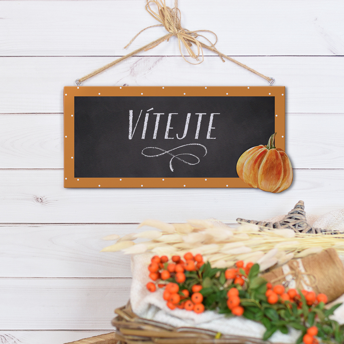 Dřevěná cedulka na zavěšení. Tu pravou atmosféru podzimu Vám vytvoří právě tato dekorace. Třeba hned u vstupních dveří :) Krásné barvy a malá dýňka jako podzimní ozdoba.  materiál: dřevovelikost: 29 x 13,5 cm x 1 cm prečítať celé