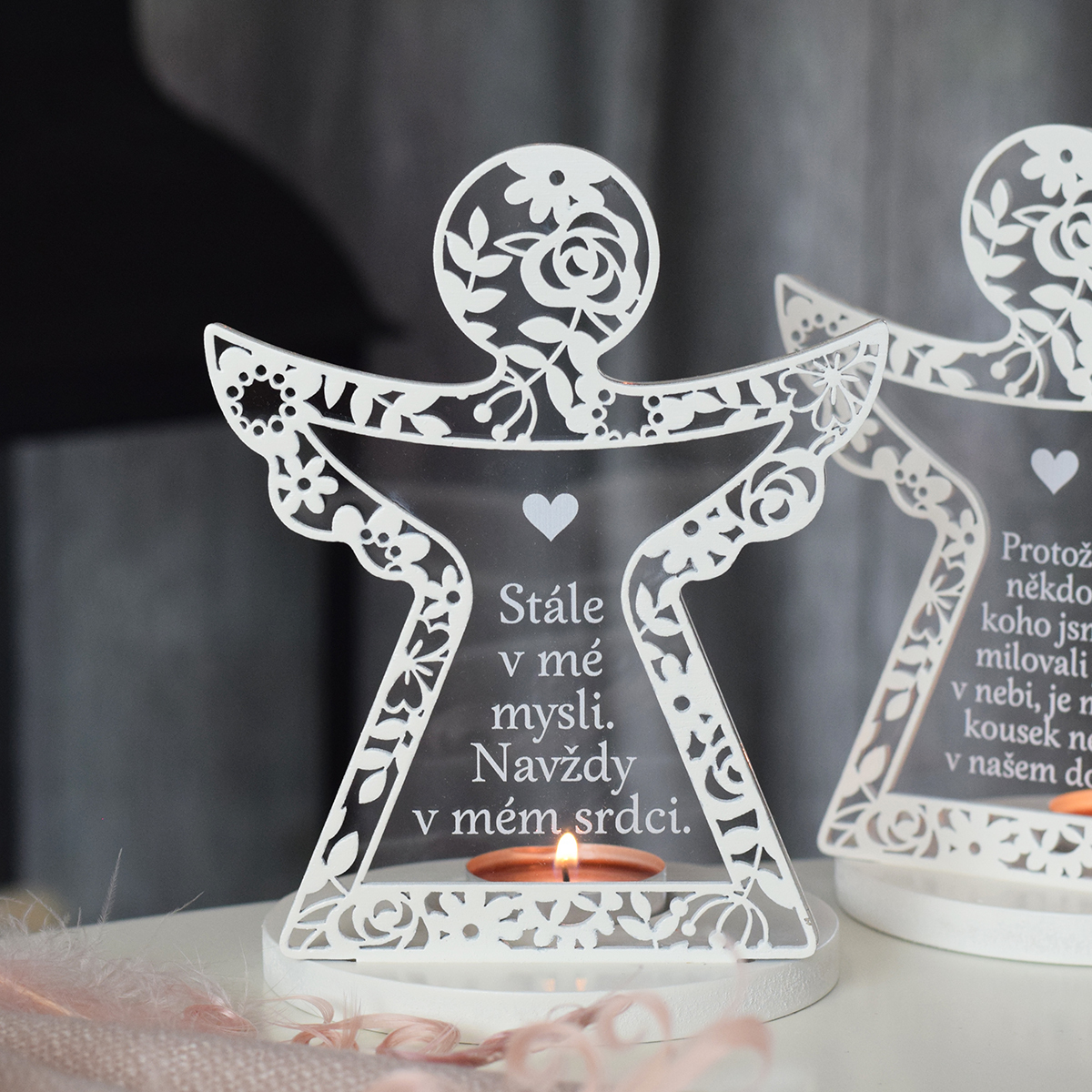 Svícen vyřezávaný anděl - Stále v mém srdci.