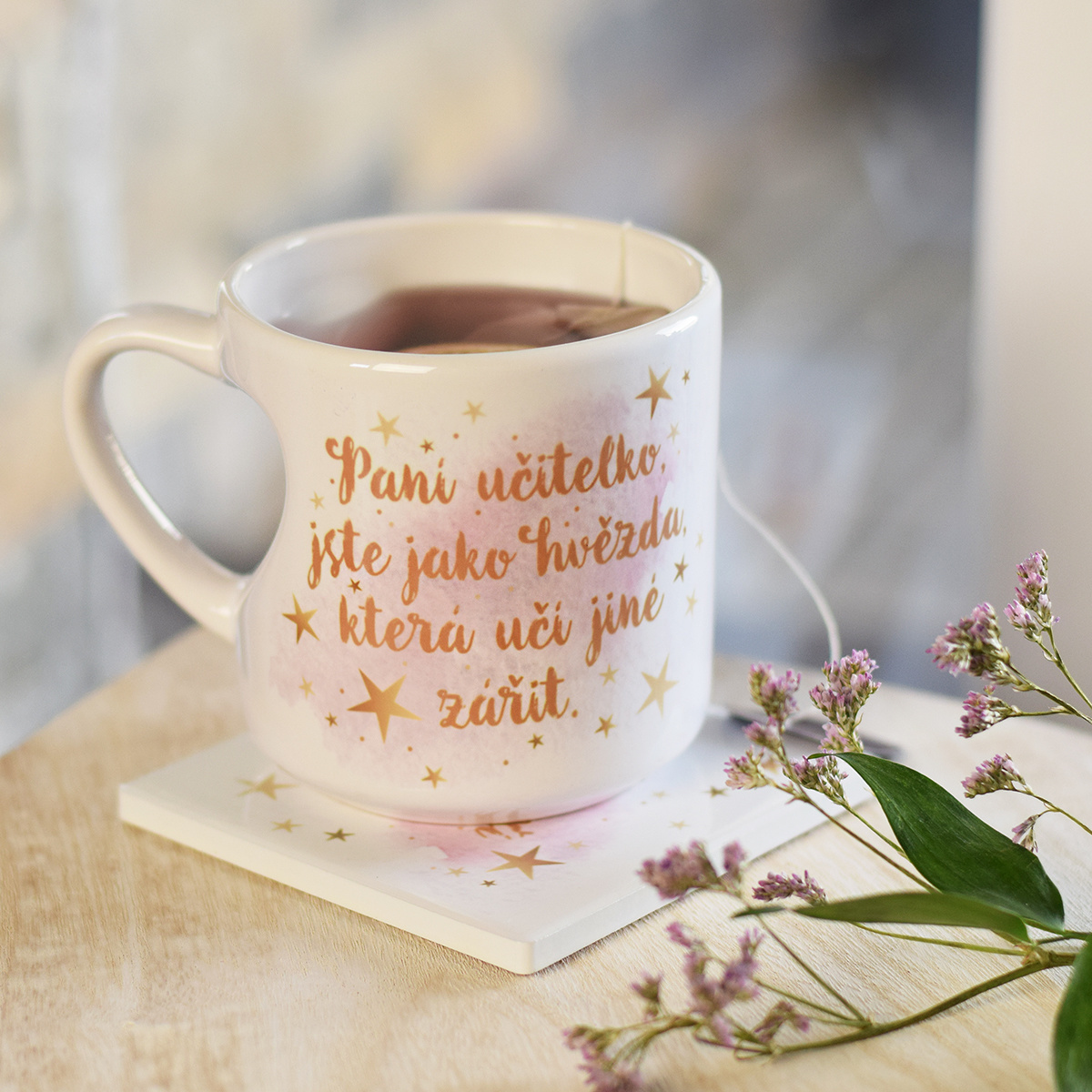 Srdcový hrnek - Paní učitelka je hvězdaKeramický hrneček s tvarem ouška ve tvaru srdce a textem pro paní učitelky. Pití z tohoto hrnečku bude požitkem. objem: 300 ml Milé dárečky od srdce, které zaručeně udělají radost ! Prohlédněte si další hrnečky z naší výroby! prečítať celé
