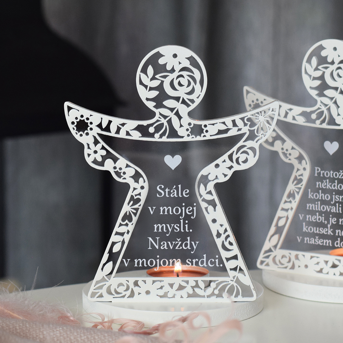 Svícen vyřezávaný anděl - Stále v mém srdci. SK