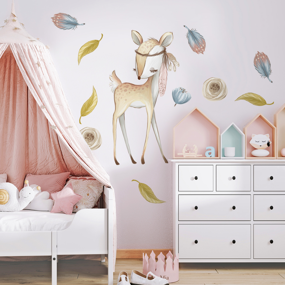 Samolepka na stěnu s motivem srnečky bude krásným doplňkem do dětského pokojíčku!