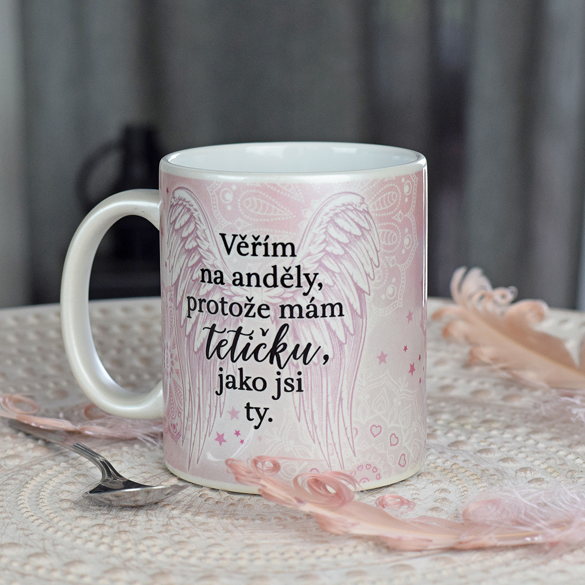 Perleťový hrnek Věřím na anděly - tetička