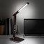 LED stolní lampička s displayem, 9W, volba teploty světla, kůže, hnědá