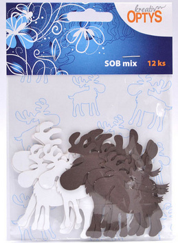 v balení: 3x malý a velký bílý sob a 3x malý a velký hnědý sob - 12 ks