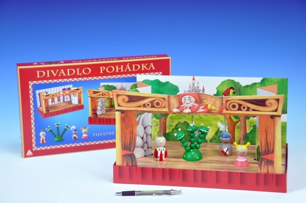 Divadlo Pohádka obsahuje podstavec, 2 kulisy z tvrdého papíru a 4 dřevěné figurky. Baleno v krabici z tvrdého papíru. Nevhodné pro děti do 3 let. Obsahuje malé části. Výrobek je zdravotně nezávadný. Rozměry výrobku 375 x 225 x 40 mm. prečítať celé