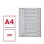 Rejstříky pro číselné roztřídění dokumentů v pořadačích či deskách do formátu A4 s popisovatelnou titulní stranou. Zesílená multiperforace plastovým proužkem na titulní straně. 20 dělicích listů se štítky 1-20 pro rychlou orientaci v obsahu.Univerzální multiperforace (11 děr) pro založení do...