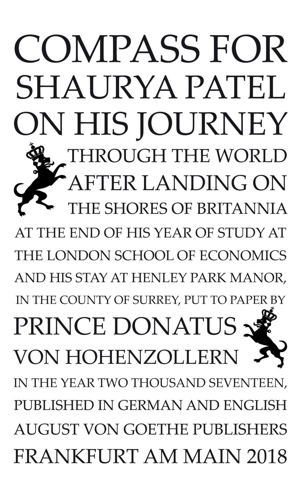Compass for Shaurya Patel on his journey through the world after landing on the shores of Britannia at the end of his year of st (anglicky)