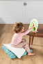 Bezpieczne, trwałe wykonanie z drewna sprawia, że zegar posłuży przez długi czas i będzie pięknym dodatkiem do pokoju każdego dziecka.
