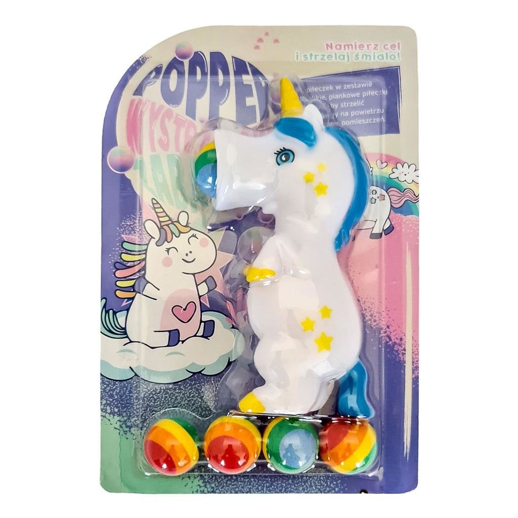 Gniotek strzelający piłeczkami jednorożec