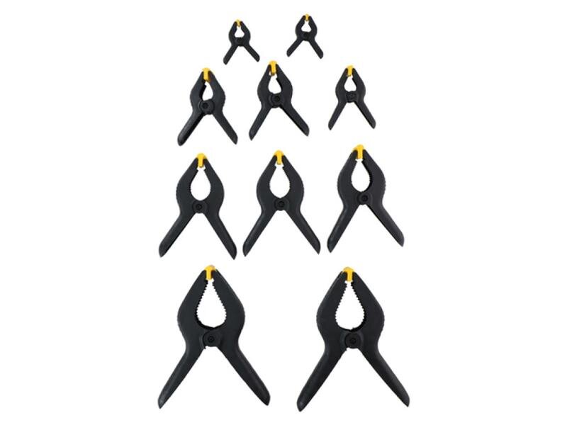Tato sada 10 pružinových svorek je ideální pro širokou škálu použití v dílně, domácnosti i při kreativních projektech. Pevná plastová konstrukce s ocelovou pružinou zajišťuje silný a stabilní úchop, zatímco ergonomický design umožňuje snadnou manipulaci.