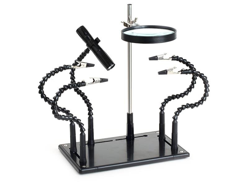 - obsahuje 5 nastavitelných ramen ( pomocné ruce) , svorku a svítilnu