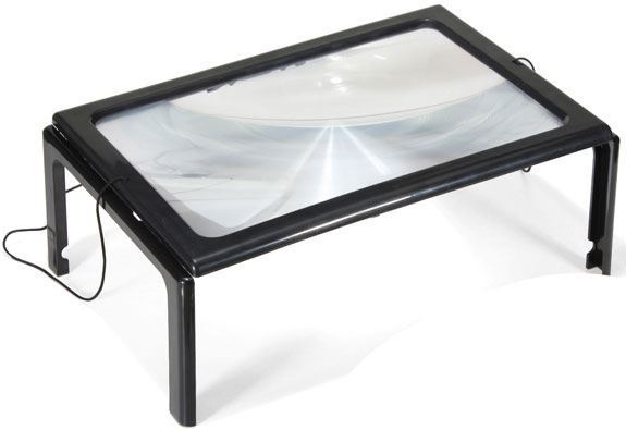 Čtecí - pracovní lupa s osvětlením k postavení na podložku nebo zavěšení na krk. Složenou je možno používat i jako ruční lupu. Usnadní čtení nebo práci.