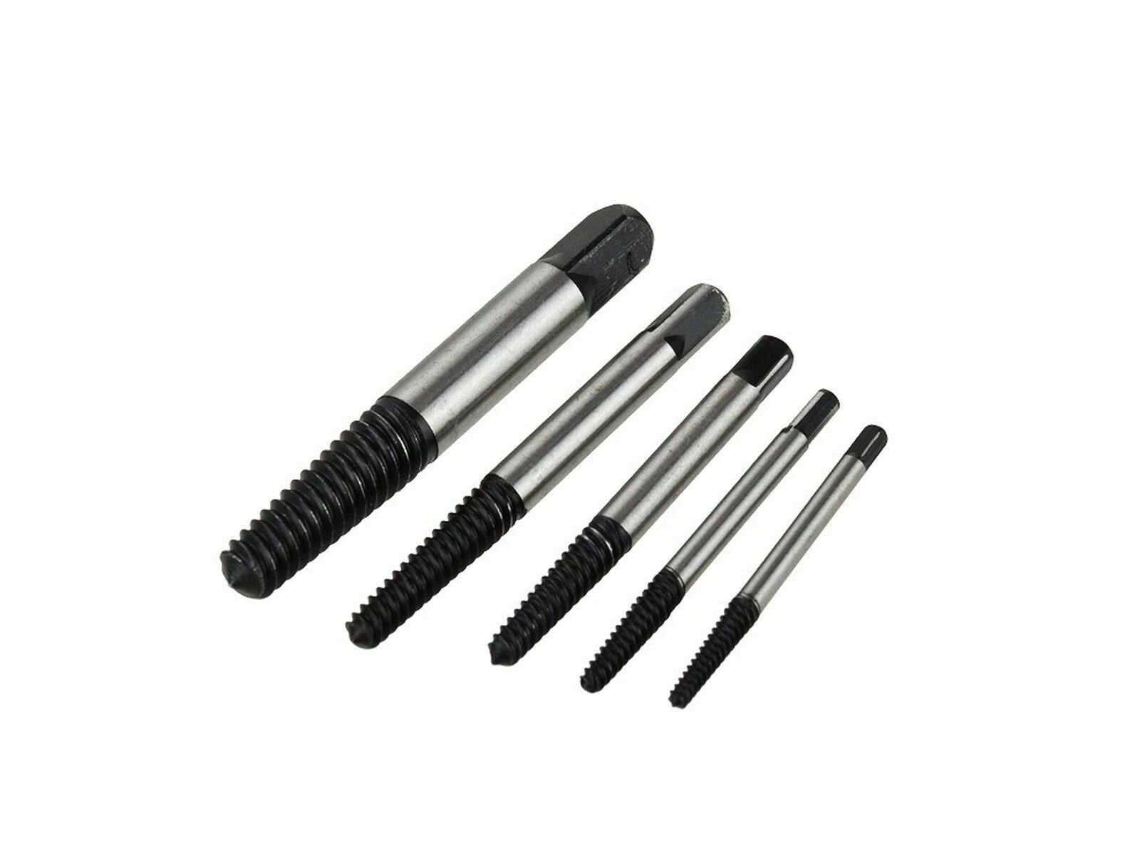 Sada pěti šroubových extruderů různých velikostí pro odstraňování poškozených nebo jinak poškozených šroubů, kolíků atd.