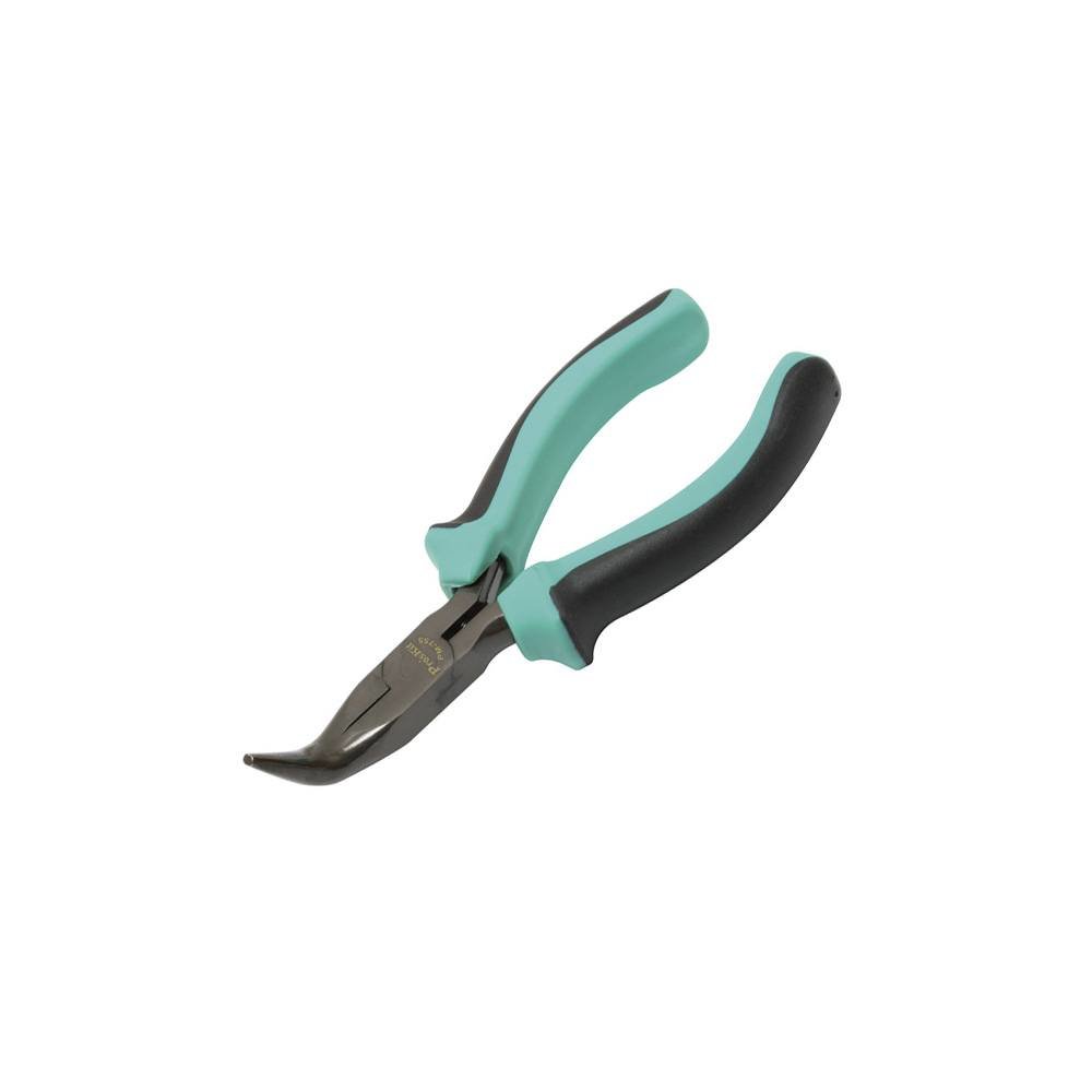 Tieto kliešte sú obzvlášť vhodné na prácu s elektronikou alebo v teréne, kde je potrebná precíznosť a spoľahlivosť. Ich plochá a zahnutá čeľusť vám umožní ľahký prístup aj do ťažko dostupných miest a presné uchopenie súčiastok bez ich poškodenia.