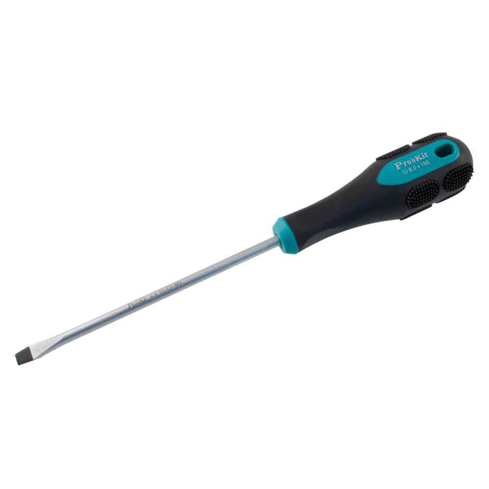 Plochý šroubovák s plastovou ergonomickou rukojetí.Speciální tvar proti prouklouznutí.Materiál dříku: AISI 8660Celková délka šroubováku 271mm.Délka dříku 150mm.Šířka břitu 6mm. prečítať celé