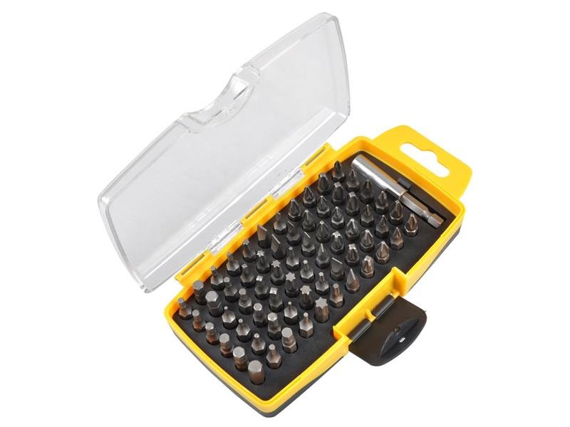 Sada bitů 6 mm z CR-V materiálu, který představuje vyšší pevnost materiálu a zajišťuje tak menší opotřebení. Sada je logicky uspořádána, neboť obsahuje až tři stejné bity od typu proto, aby při opotřebení či ztrátě bitu bylo možno v práci pokračovat dále. Sada také obsahuje prodlužovací nástavec, který tak z vrtačky udělá univerzální šroubovačku. <br/><br/>Technické parametry:<br/><br/>- sada bitů 67 ks<br/>- bity 6 mm:<br/>- bity ploché SL: 3.0, 4.0, 4.5, 5.0, 5.5, 6.0, 6.5, 7.0<br/>- bity křížové PH: 0, 1, 2, 3<br/>- bity křížové PZ: 0, 1, 2, 3<br/>- bity torx (hvězdičky) TX: 8, 9, 10, 15, 20, 25, 27, 30, 35, 40<br/>- bity hex (imbusy) H: 1.5, 2.0, 2.5, 3.0, 4.0, 4.5, 5.0, 5.5, 6.0, 1/16, 5/64, 3/32, 7/64, 1/8, 9/64, 5/32, 3/16, 7/32, 1/4<br/>- bity square (čtverec) SQ: 0, 1, 2, 3<br/>