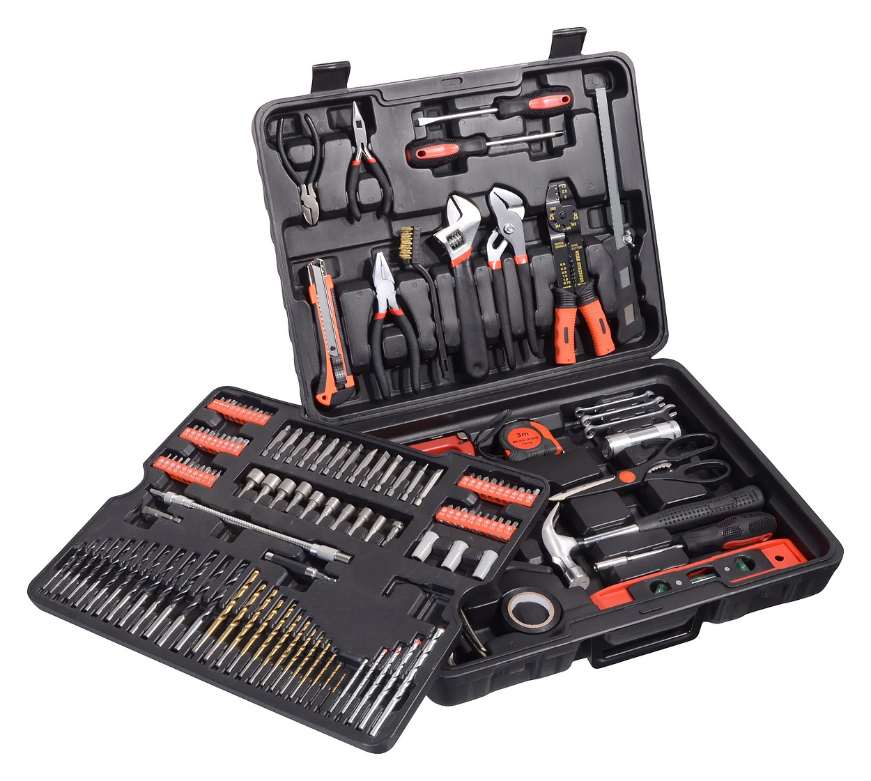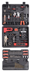popis: <br/>Praktický přenosný kufřík s kvalitním nářadím a se spojovacím materiálem.<br/>Vše uspořádáno v přehledných pozicích, uvnitř navíc jedno plato s nástroji. Spojovací materiál je umístěn ve víku kufru.<br/>Sada obsahuje celou řadu vrtáků, bitů, nástrčných klíčů, šroubováky, kleště, kladivo, vodováhu, stranové klíče, základní spojovací materiál a celou řadu dalšího nářadí, které je vhodné pro použití jak doma, v garáži, tak i na cestách.<br/><br/>Rozměry kufru: 45 x 36 x 13 cm.<br/>obsah kufru<br/>horní strana<br/>1x nastavitelný klíč 200 mm<br/>1x klešte siko 200 mm<br/>1x kleště konektorové 200 mm<br/>1x kleště univerzální 150 mm<br/>1x kleště štípací 130 mm<br/>1x kleště půlkulané 130 mm<br/>1x nůž<br/>1x kartáč<br/>2x šroubovák (křížový, plochý)<br/>1x pilka malá<br/>spodní strana<br/>1x sešívačka<br/>1x metr svinovací 3 m<br/>3x klíč očkoplochý (6, 8, 10 mm)<br/>1x svítilna<br/>1x nůžky<br/>1x kladivo<br/>1x vodováha<br/>1x izolační páska<br/>1x kleště samosvorné 180 mm<br/>2x svěrka uni nylonová<br/>1x šroubovák na bity<br/>vložené plato<br/>14x bit 50 mm (plochý, křížový)<br/>9x bit nástrčný (5 - 13 mm)<br/>1x bit - záhlubník 35mm<br/>50x bit 25 mm (plochý, křížový, hvězdička, čtverec, hex)<br/>1x nástavec na bity ohebný 250mm<br/>1x imbus klíč 3<br/>4x zarážka na vrták<br/>1x nástavec na bity<br/>13x vrták na kov (1,5 - 6,5 mm)<br/>13x vrták do dřeva (3 - 8 mm)<br/>5x vrták do zdiva (3 - 8 mm)<br/>3x plastový chránič<br/>schránka na víku<br/>410x spojovací materiál (šroubky, hmoždinky, hřebíky)