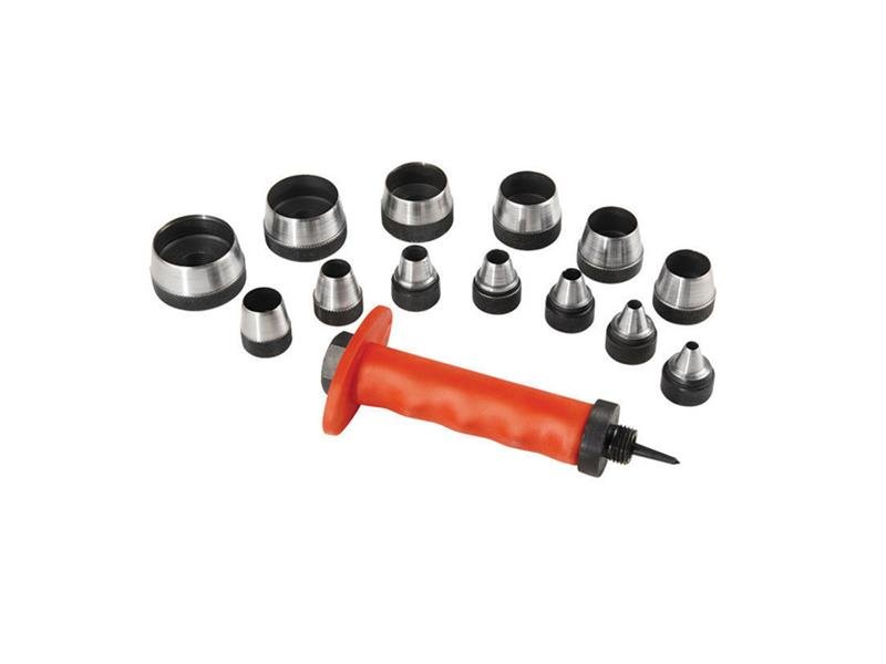 Výsečník EXTOL PREMIUM 8801850 13ks <br/> Rozměry: ø 5-6-8-10-11-13-16-19-22-25-28-32-35mm<br/><br/>Celokovová rukojeť potažená měkkým plastem s chráničem proti poranění<br/>Kovová jehla k udržení stabilní polohy výsečníku při práci<br/>Vyměnitelné... prečítať celé
