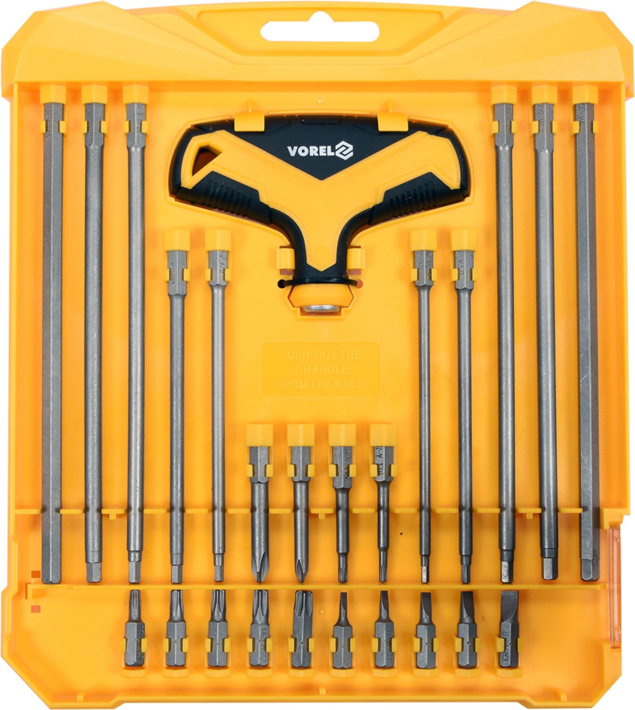 Šroubovák je díky délce bitů vhodný zejména pro špatně přístupné aplikace, hroty bitů jsou navíc magnetické.
