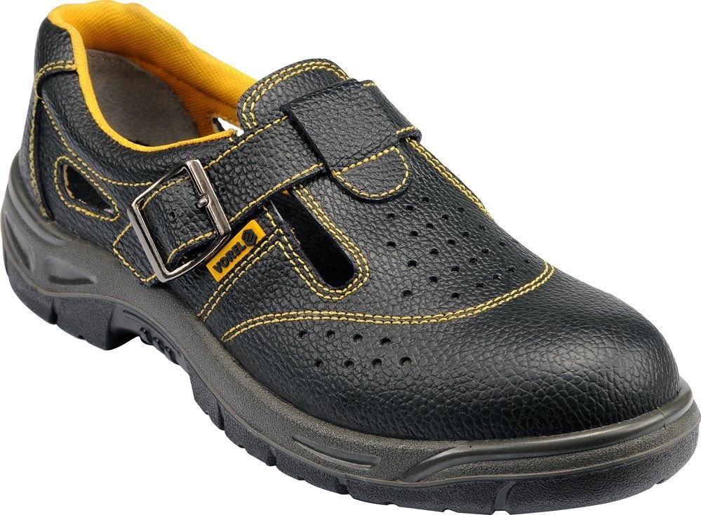 Pracovní sandály SERRA - svršek z lícové usně v černé barvě, s otvory zajišťujícími dobré větrání boty - upevněno kovovou sponou - dvouvrstvá podešev PU / PU, odolná proti olejům, antistatická, protiskluzová, tlumení nárazů pod patou - ocelová špička odolná proti nárazům o energii 200 J a ohyby...
