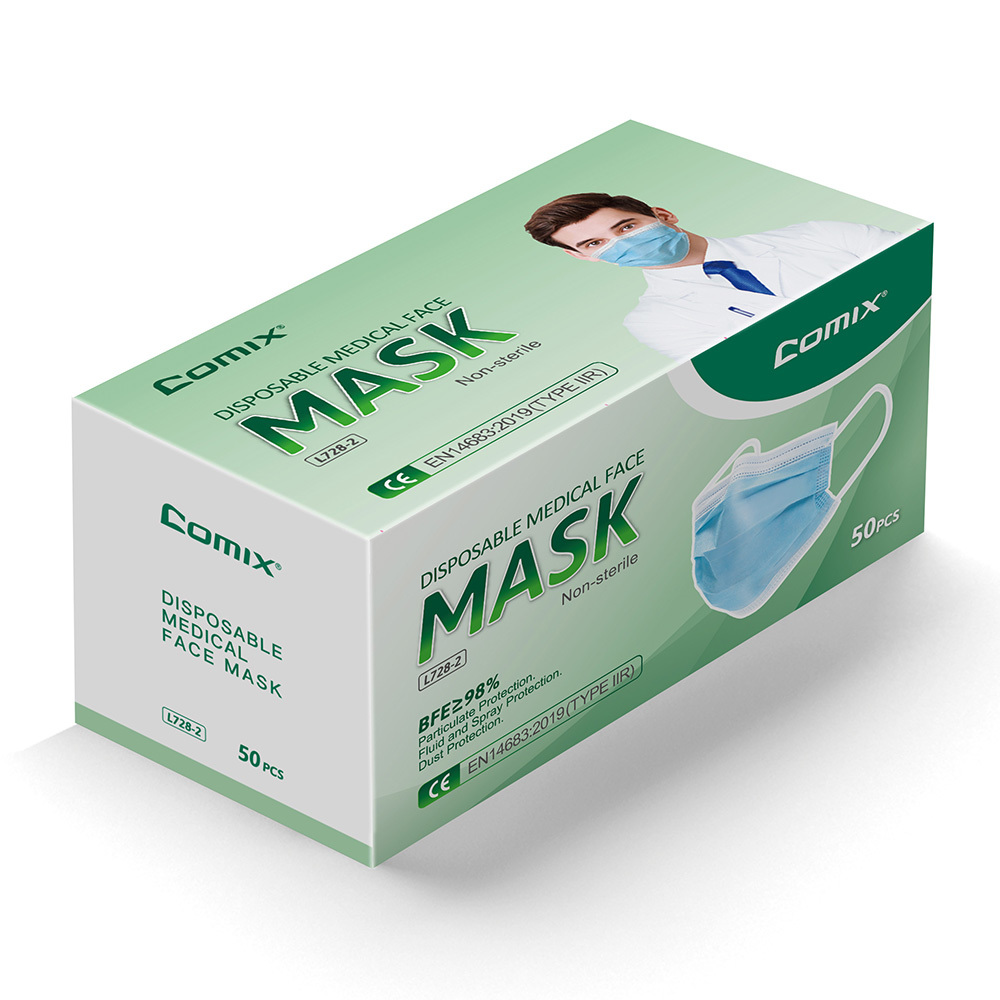 Chirurgická rouška 3-vrstvá Comix, L728-2, Type IIR s vysokou efektivitou filtrace BFE 98% garantovanou CE certifikátem - chirurgická zdravotní rouška určená pro chirurgické zákroky, lékařské, stomatologické, kancelářské, ale i domácí účely s vys... Chirurgická rouška 3-vrstvá Comix, L728-2, Type...
