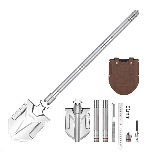 Universální lopatka z nožířské nerezové ocele 3Cr13, hliníkové slitiny a uhlíkové oceli. V jednom kousku vybavení najdete lopatku, motyku, nůž, pilku, sekeru, magnesiový zapalovač, což je to hlavní. Jako bonus navíc je zde řezač lanek, píšťalka, hrot pro nouzové rozbití skla, otvířač lahví,...