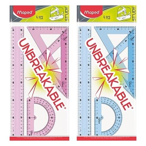 Nowa wersja linijek STUDY w zestawie w znacząco obniżonej cenie. Mocna i w pełni elastyczna. NIEŁAMLIWA. Nieścieralna podziałka odporna na promieniowanie UV. Zaokrąglone rogi. Dwustronna skala. Wyróżnione wartości co 5 cm. Transparentne kolory: różowy i błękitny. Zawartość zestawu: linijka 30 cm, kątomierz 12 cm, ekierka 60 21 cm, ekierka 45 21 cm. Pakowane w torebkę z zawieszką.