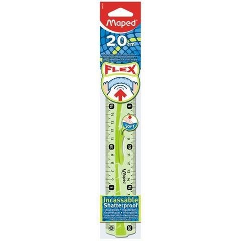 Nowa generacja linijek o bardzo dużej odporności na złamanie. Efektowny, gumowany element na całej długości linijki FLEX zapobiega jej przesuwaniu w czasie pracy i poprawia elestyczność. Linijki dostępne w dwóch kolorach zielonym i niebieskim. Linijka z gumowym uchwytem. Skala po obu stronach. Długość 20 cm. Kolor wysyłany losowo.