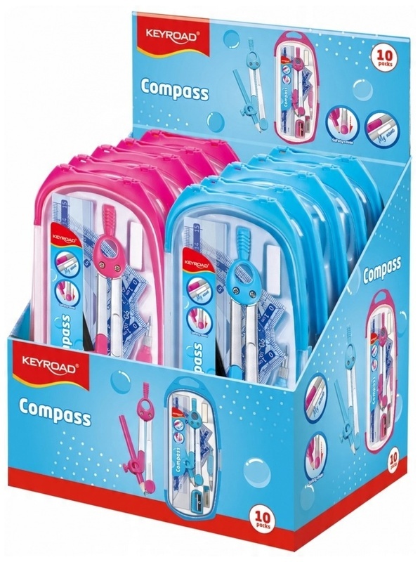 Cyrkiel na ołówek + zestaw geometryczny 9 elementów, Keyroad