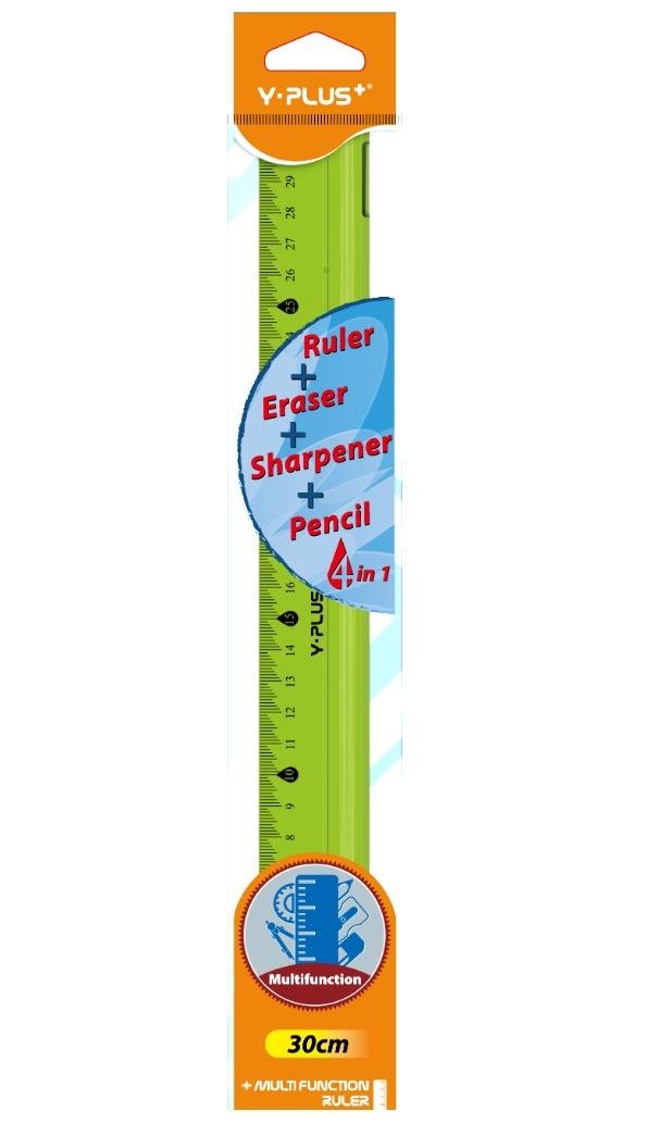 Linijka 4w1, 30 cm. Linijka, Gumka, temperówka, ołówek. prečítať celé