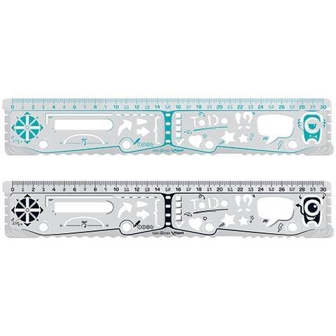 Wielofunkcyjna linijka GeoNotes 30 cm doskonała do kreślenia, podkreślania i odrysowywania szablonów. Z jednej strony krawędź prosta z drugiej ząbkowana. Transparentna z elementami czarnymi lub zielonymi. . Dwie strefy graficzne - techniczna i do szkicowania. 4 otwory umożliwiają wpięcie do segregatora. Opakowanie - torebka zawieszkowa z dodatkowymi elementami graficznymi. JS 1 szt