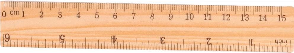 Linijka 15 cm wykonana z drewna. Wyraźna skala prečítať celé