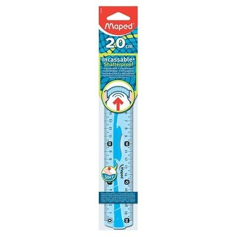 Nowa generacja linijek o bardzo dużej odporności na złamanie. Efektowny, gumowany element na całej długości linijki FLEX zapobiega jej przesuwaniu w czasie pracy i poprawia elestyczność. Linijka z gumowym uchwytem. Skala po obu stronach. Kolor niebieski. Długość 20 cm. J.S.: 1 szt