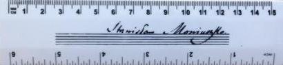Biała linijka o długości 15 cm została ozdobiona autografem Stanisława Moniuszki. prečítať celé