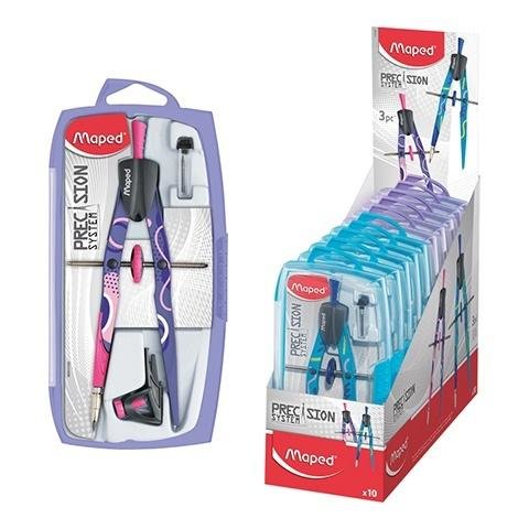 Cyrkiel zerowy z końcówką grafitową i uniwersalną oraz zapasowymi grafitami, maksymalny promień 300 mm, długość cyrkla 165 mm. Dwie wersje kolorystyczne: niebieska i fioletowo-różowa. Pudełko odporne na pęknięcia. J.S.: 1 szt. prečítať celé