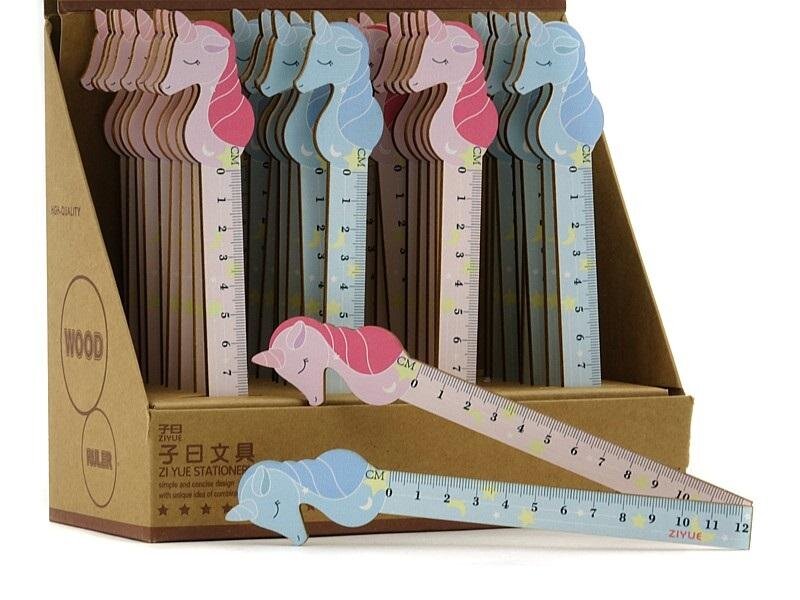 linijka drewniana jednorożec dł.12cm, display 36szt; 20x19x10cm, Box prečítať celé