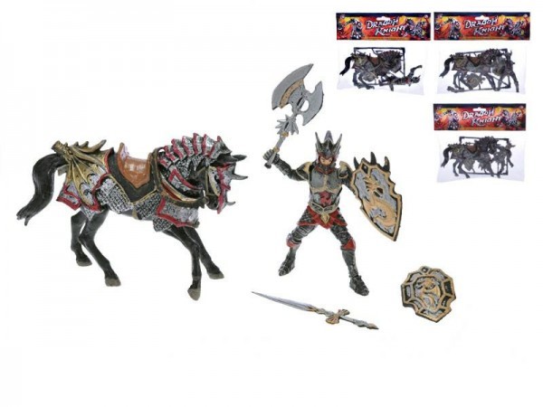 Dračí rytíř 10cm s koněm 15cm a doplňky 4druhy v sáčku