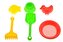 W zestawie znajdziesz łopatkę, grabki, trzy foremki i sitko. Mix kolorów, towar wysyłany losowo.