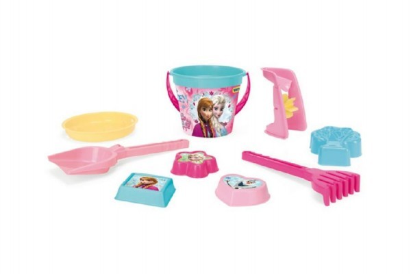 Set na písek plast 9ks Ledové království/Frozen Wader v síťce 23x35x23cm