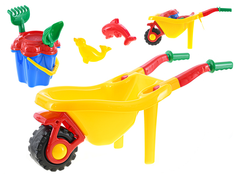 Koliesko + sada na piesok žlté 6ks v sieťke