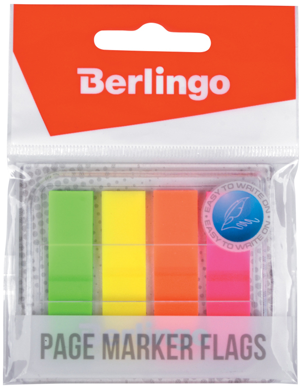 Zakładki indeksujące PP, 45x12 mm, 4x20k., zawieszka, w dozowniku., 4 kolor., neon, Berlingo