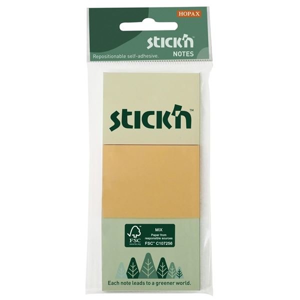 Papierowe notesy samoprzylepne wyprodukowane z drewna pozyskanego w ramach zrównoważonej gospodarki leśnej.Idealne do robienia notatek i zostawiania ważnych wiadomości. 3 notesy 38 x 52 mm każdy po 100 karteczek, w 3 pastelowych kolorach: żółtym, zielonym i pomarańczowym.