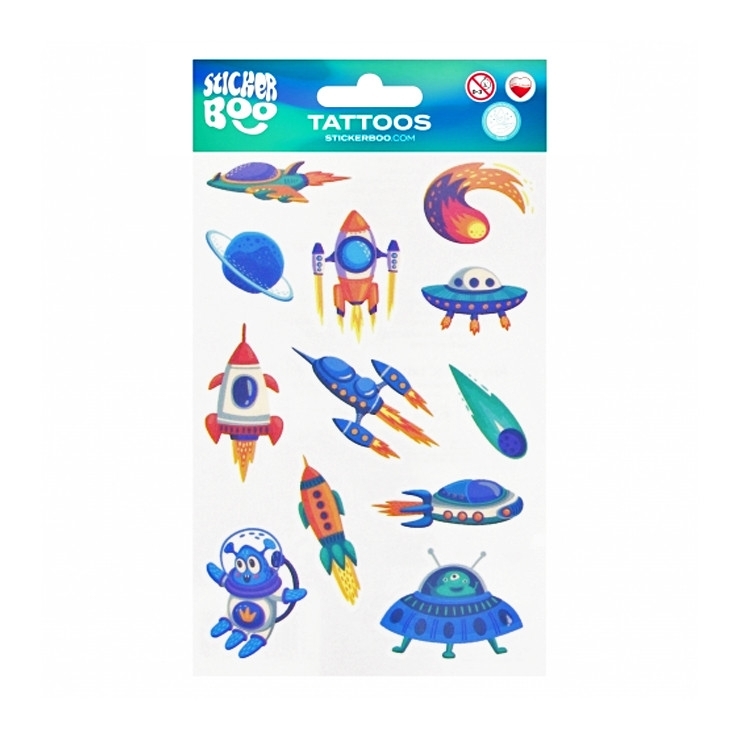 Tetování vesmír, dopis s 12 tetováními. Rozměry produktu jsou 18x10 cm. Vhodné pro děti 3+. prečítať celé